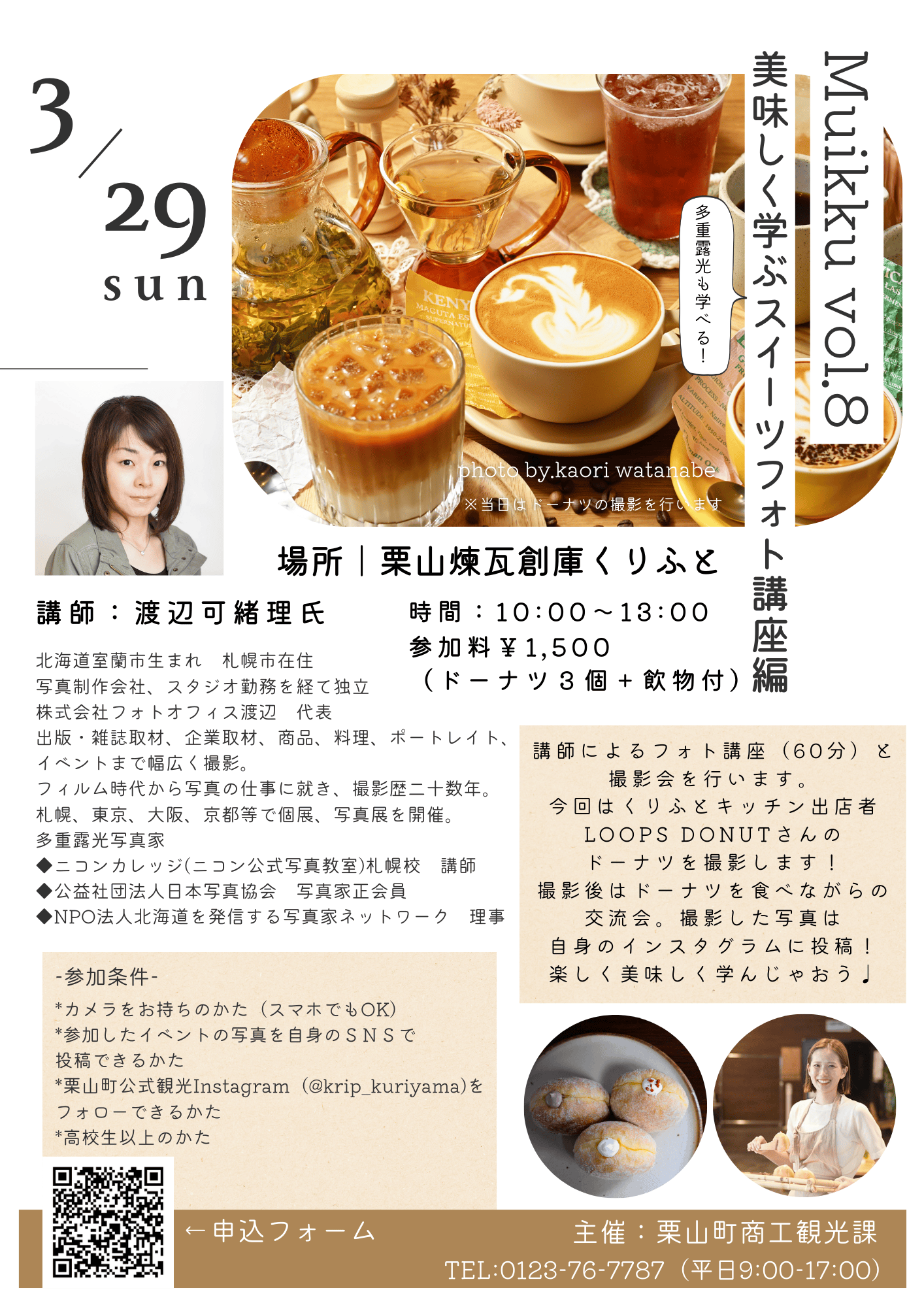 栗山煉瓦創庫くりふとでプロの写真家をお迎えし、スイーツフォト講座を開催します。